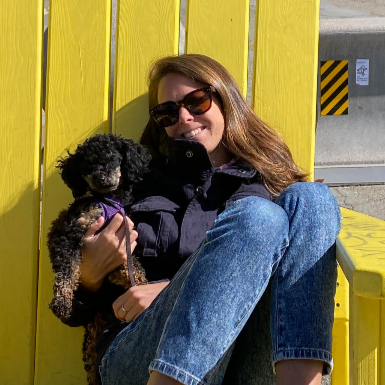 Hi! I'm Ari, a lifelong dog lover and proud auntie to a mini poodle named Kafka. I'm excited to be part of the Blue Dog team, spend time outdoors with your pups, and build relationships with them along the way. I also grew up with a rat terrier who had quite a character! My background is in climate policy, and I hold a PhD in disaster resilience.